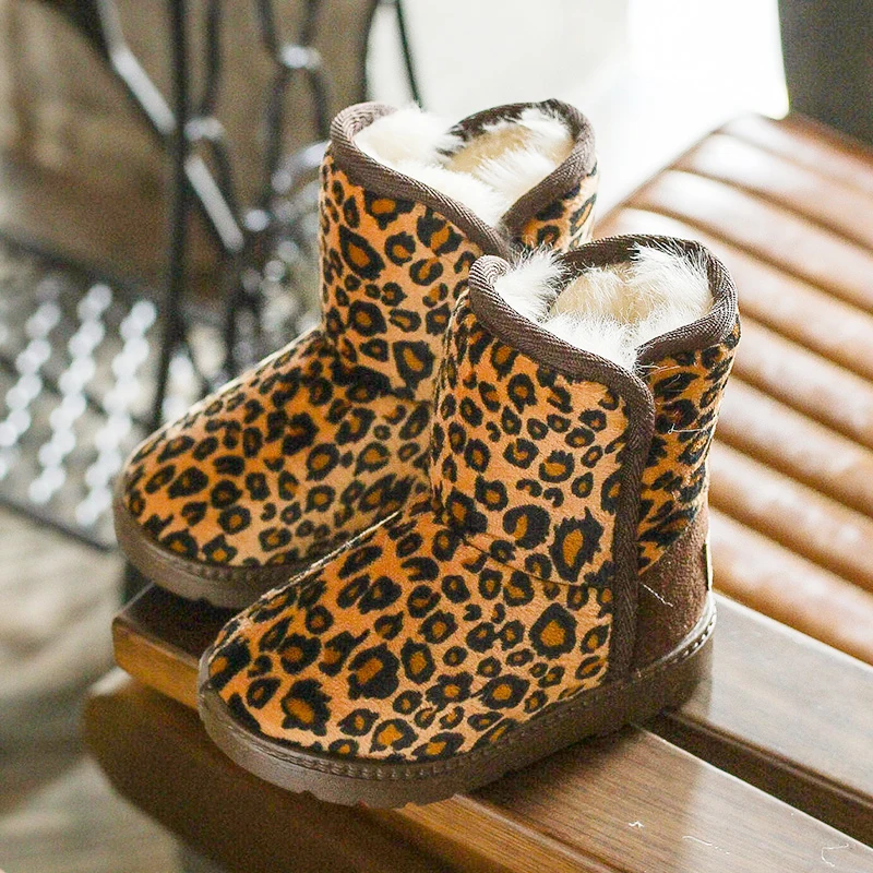 .image of Winter warm girls snow boots boys ankle shoes children fashion shoes for kids baby shoes leopard pr