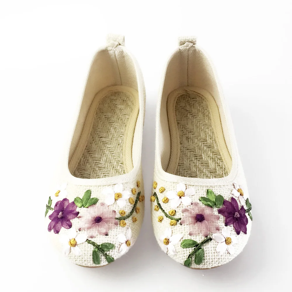Special Chance for Vintage Embroidered Women Flats Flower Slip On Cotton Fabric Linen Comfortable Old Peking Ballerina